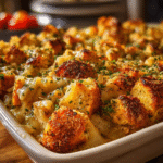 This Creamy Chicken Stuffing Bake is the ultimate comfort food — creamy, savory, and effortlessly satisfying. It combines tender chunks of chicken, a rich cream sauce, and fluffy stuffing that bakes into a golden, flavorful topping. With its cozy texture and homestyle flavor, this easy casserole is perfect for weeknight dinners, family gatherings, or potluck parties. It’s a one-dish meal that tastes like a warm hug